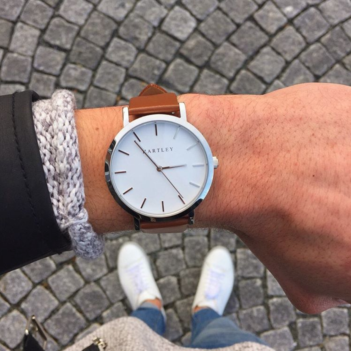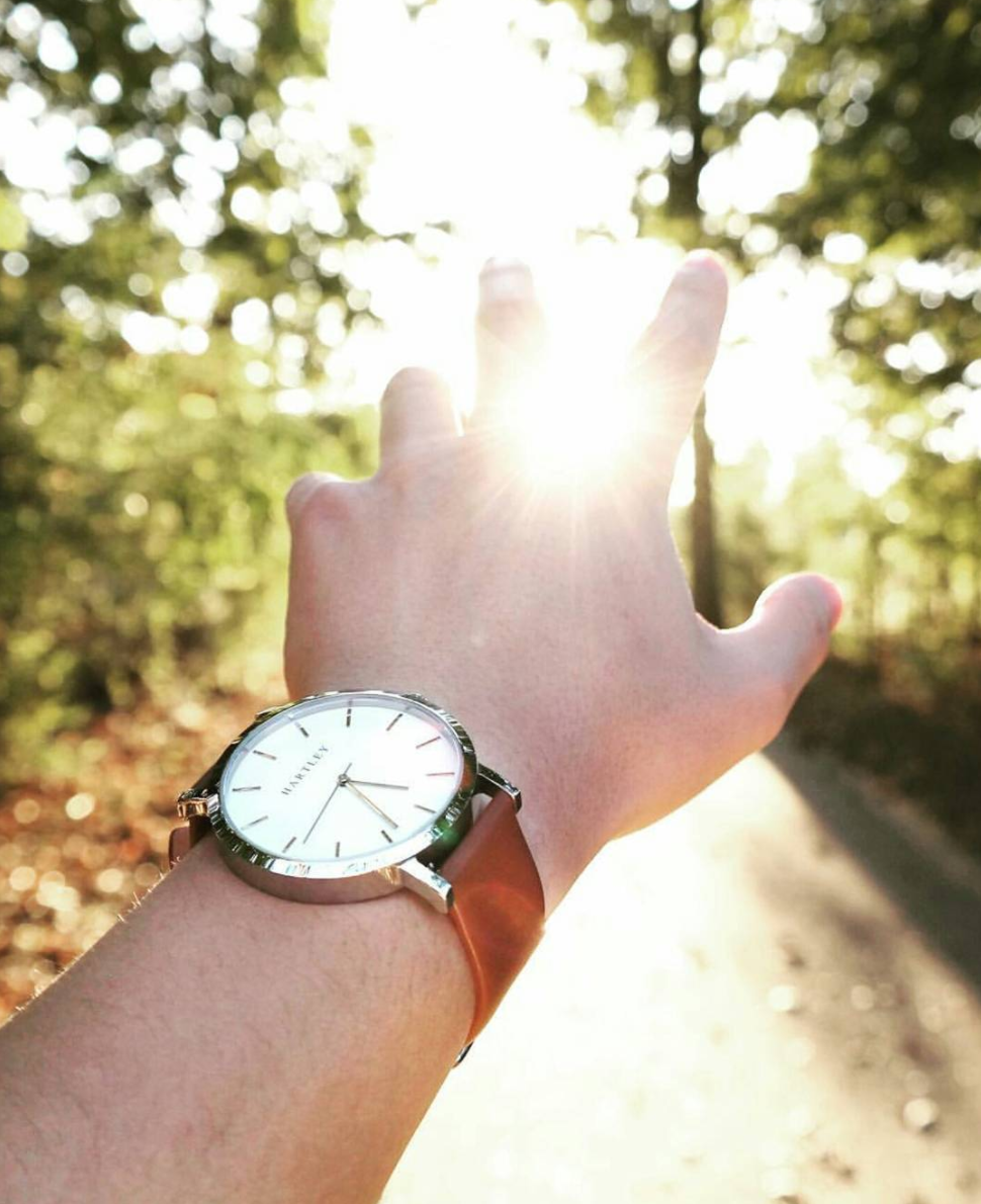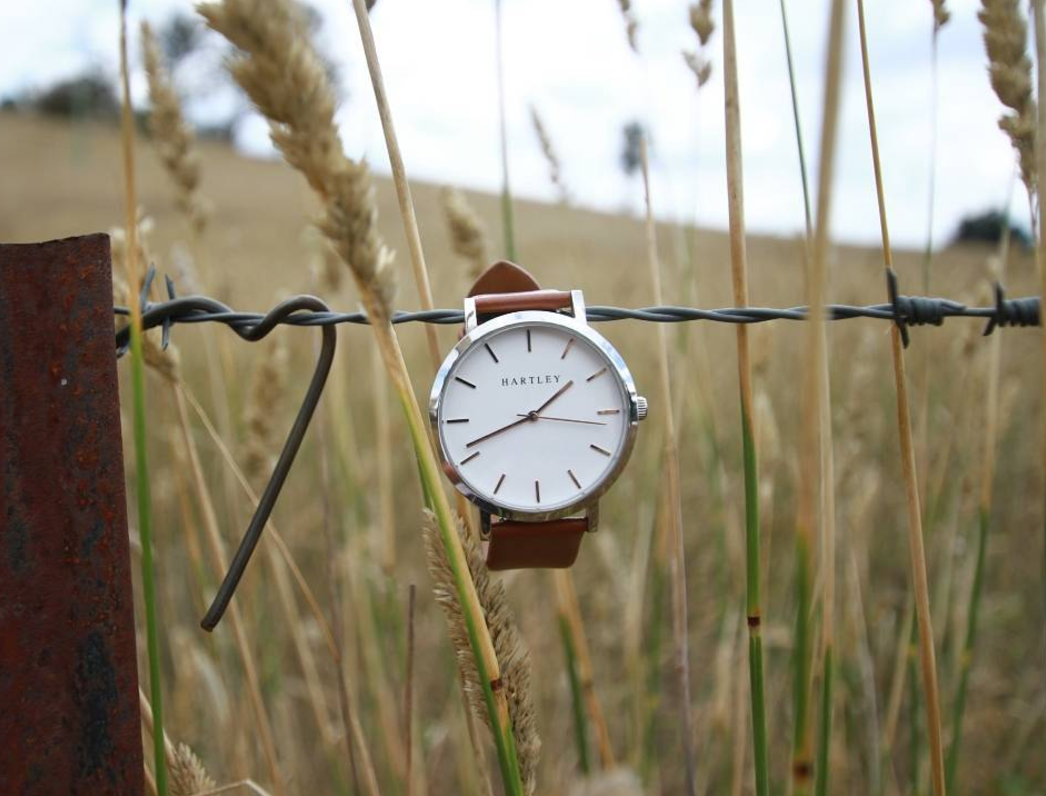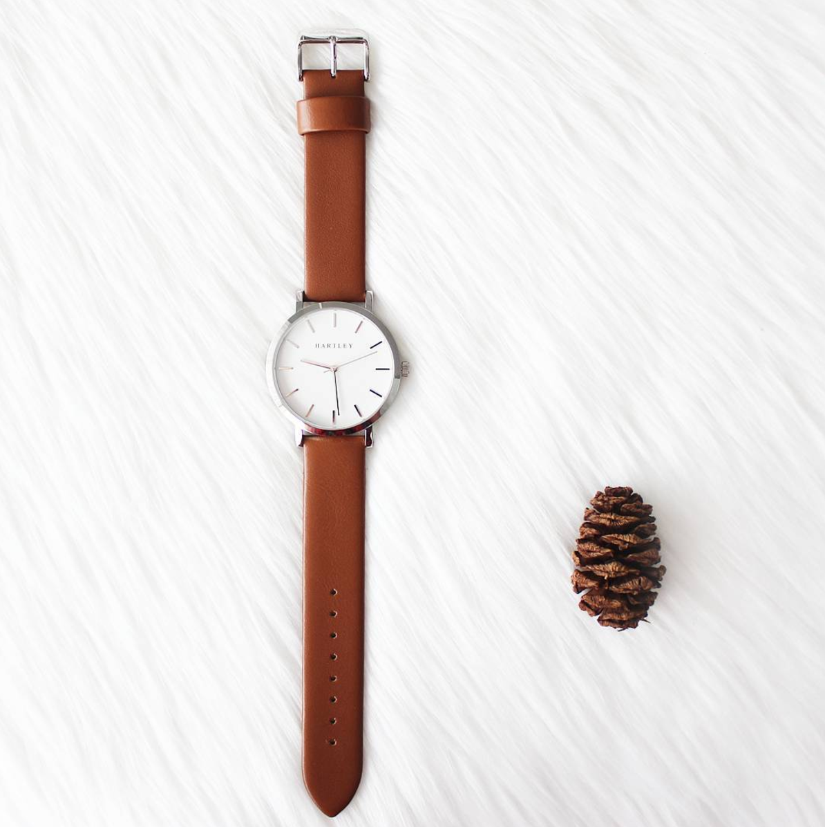 A truly minimalistic brown & silver timepiece featuring polished silver dials and hands on a clean white face. Casual or formal, this timepiece suits every occasion.